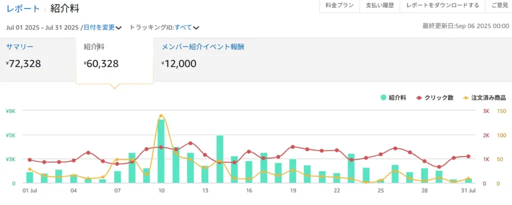 実際、僕はXアフィリエイトを始めて約2ヶ月で迎えた夏のセール(Amazonプライムデー)で、単月で8万円以上の成果を出しました。 (Amazon約72,000円、楽天約10,000円)